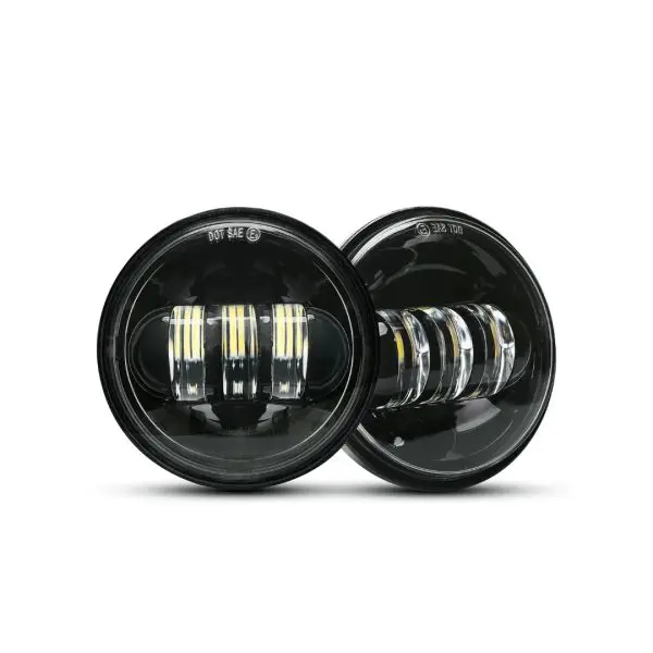 LED passing lights produce white far-reaching LED light. Aluminium housing with vertical blades for heat dissipation. IP66 waterproof. 4.5 inch round 30W 6500K fog light.