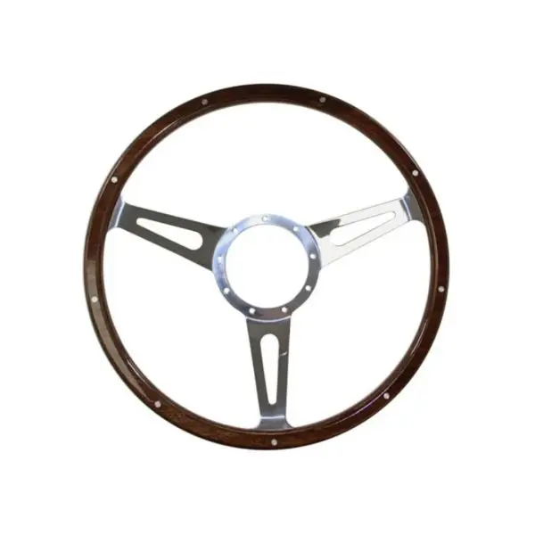 Mastodon 15 inch 9-Bolt Mahogany Woodgrain Billet Steering Wheel. Aluminum construction with woodgrain wheel and slotted spokes. Fits 9-bolt installation hubs.