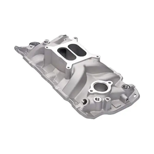 Intake Manifold for 1955-86 262-400 Small-Block Chevrolet V8. Accepts a 4150-Style Square-Bore Carburetor. Includes oil fill tube and breather. Available in satin and black.