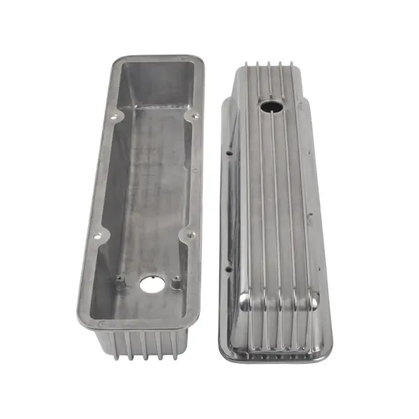 Tall Aluminium Finned Valve Covers for 1958-86 SBC engines. High-quality cast aluminium with traditional finned styling. Tall design provides extra internal clearance for aftermarket roller rockers.
